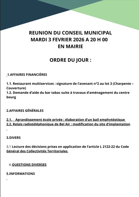 REUNION DU CONSEIL MUNICIPAL