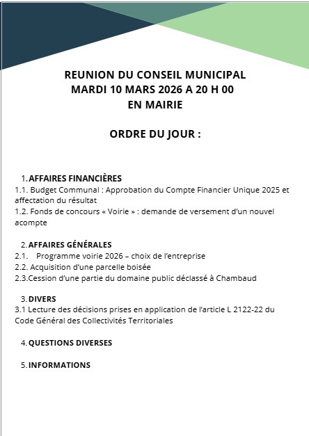Descendre vers le contenu Saint-Romain-Lachalm, une commune de Haute-LoireActualitésREUNION DU CONSEIL MUNICIPAL REUNION DU CONSEIL MUNICIPAL