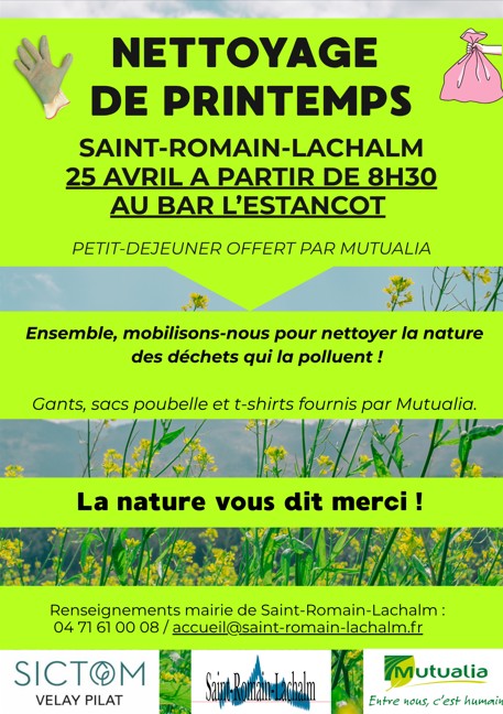 Descendre vers le contenu Saint-Romain-Lachalm, une commune de Haute-LoireActualitésNettoyage de printemps Nettoyage de printemps